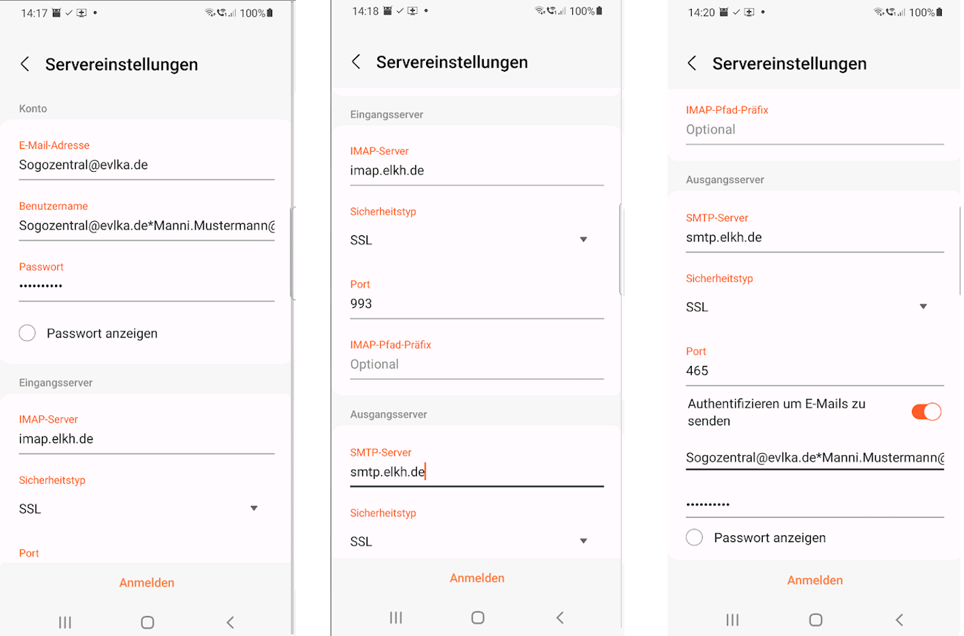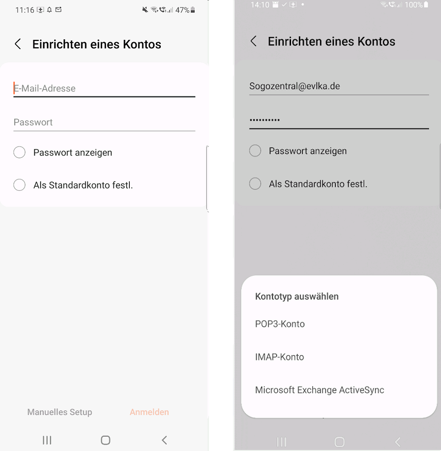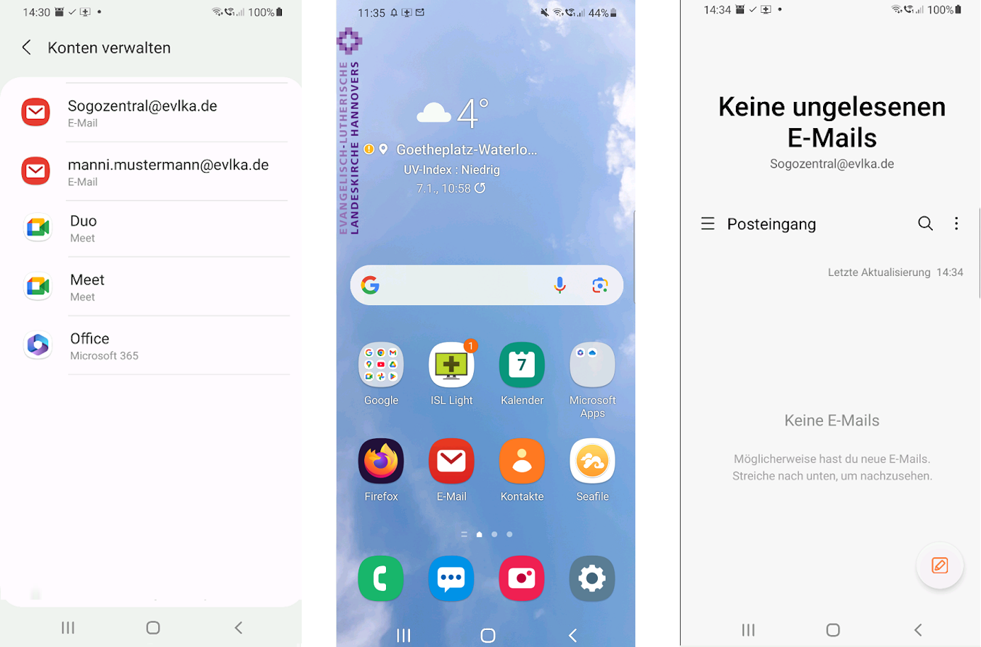 An dieser Stelle wird der Zugriff auf E-Mails in der nativen Samsung Mail App auf dem Android Smartphone gezeigt. Den Zugriff auf Kalender- und Adressbuchdaten entnehmen Sie bitte der Seite "Mobil-Kalender".
